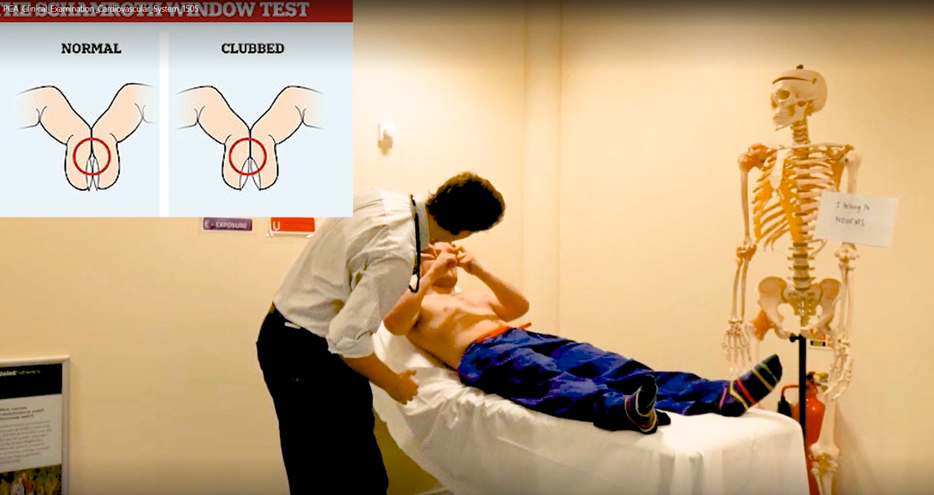Traditionally students learn the theory of anatomy in lectures. Application of theory is carried out via workshops in which students carry out prescribed examinations of patients supervised by senior members of staff. During recent times this practice has not been possible. An online alternative to this has involved filming the modelling of clinical examinations by medical staff to illustrate how to carry out particular types of examination. Filmed by members of staff, the raw footage is also edited by academics using a basic but effective editor called Video Pad. This software allows the inclusion of inlays into the video which serve further illustrate the outlines procedures. Students view the finished videos via Canvas.